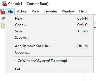 This will bring up the MMC window. In this window, click File -> Add/Remove Snap-in...