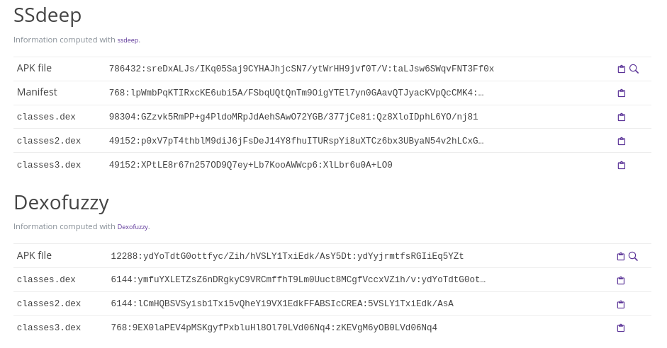 In the Fingerprints tab, scroll down to the SSdeep and Dexofuzzy results.