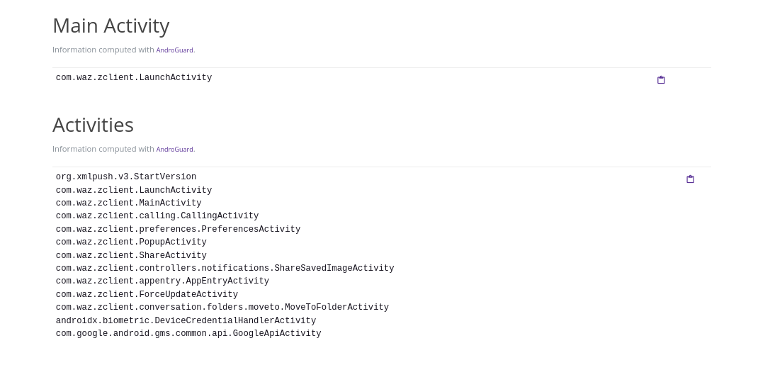 In the APK Analysis tab, we can find the main activity for this application (if you need to refresh your memory on activities, check out the Android developer's documentation. The main activity is an important point in your analysis. Indeed, when you look into the APK, you might want to start from there, so it's important to identify it in the early stages of your work.