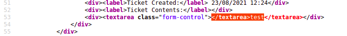 Again, opening the ticket and viewing the page source, we've successfully escaped the textarea tag.