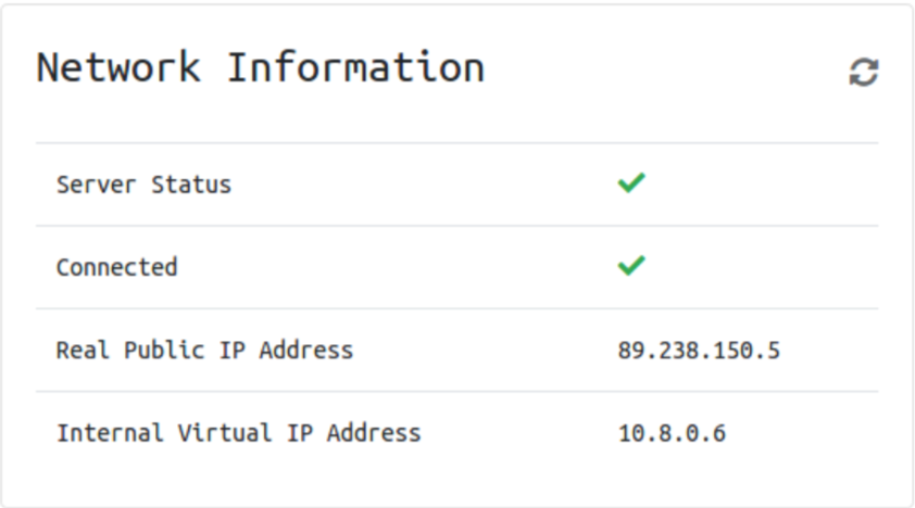 Return to your access page. You can verify you are connected by looking on your access page. Refresh the page. You should see a green tick next to Connected. It will also show you your internal IP address.