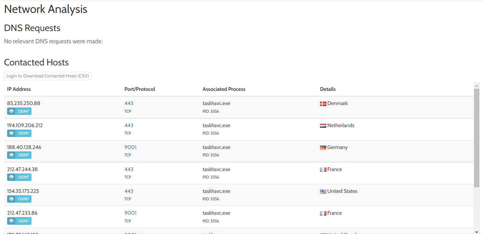 Though online sandboxes provide a useful utility, it is best not to submit a sample online unless you are sure of what you are doing. A better approach is to search for the sample's hash on the service you are using to see if someone has already submitted it. Let's look at Hybrid Analysis to see what interesting analysis it provides for our sample.