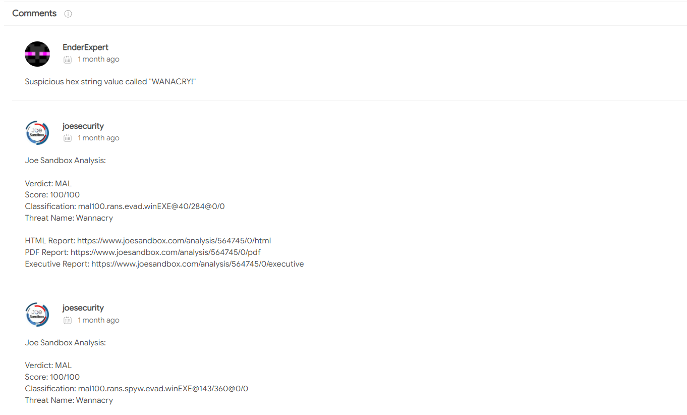 And there are comments from the community at the very end. As we might have seen, we can find many pieces of the puzzle that a malware sample is, using the discussed techniques. However, in some cases, these techniques can prove insufficient to make a decision. Let's move to the next task to determine what scenarios can make it challenging to analyze malware.