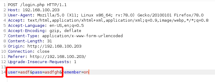 The original captured login request looks like this: