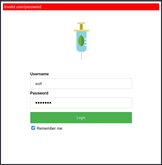 This forces the database to return all user documents and as a result we are finally logged into the application: