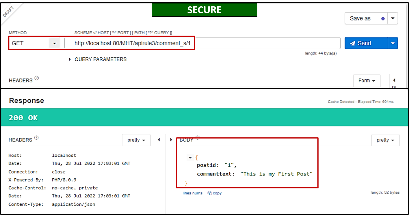 /apirule3/comment_s/{id}that returns only the necessary information to the developer (as shown below).