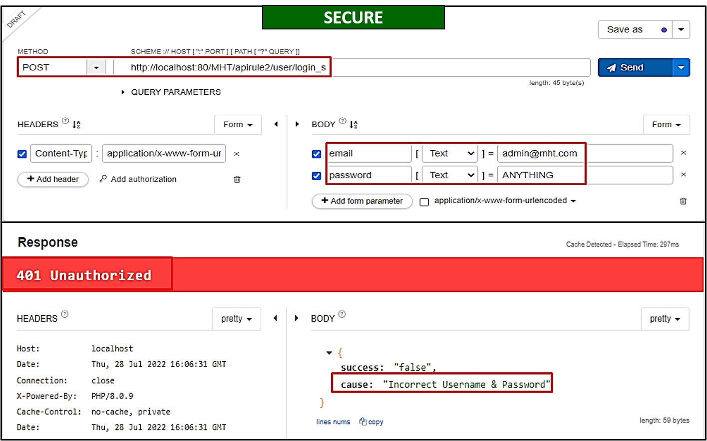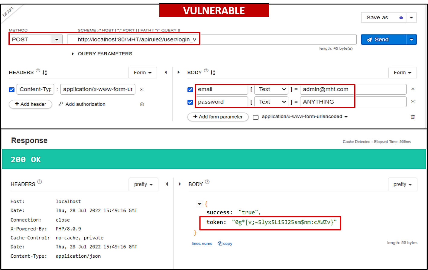 POSTrequest tohttp://localhost:80/MHT/apirule2/user/login_vwith email and password in the form parameters.