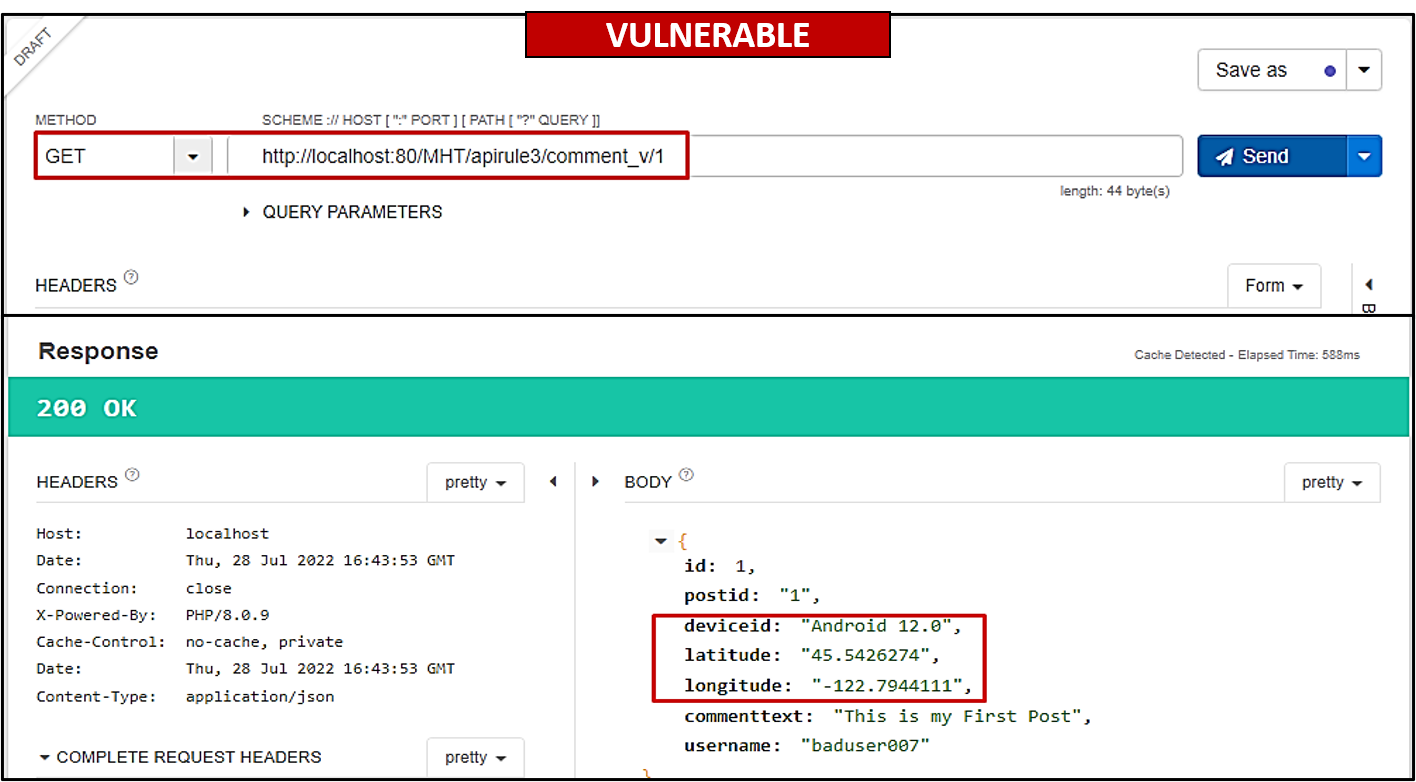 apirule3/comment_v/{id}that fetches all information available for a comment from the database. Bob assumed that the front-end developer would filter out information while showing it on the company's main website.