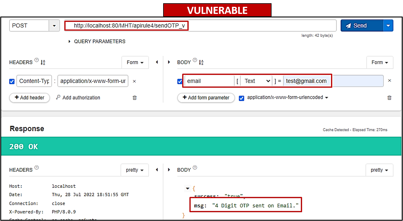 (/apirule4/sendOTP_s)and enabled rate limiting such that the user has to wait 2 minutes to request an OTP token again.