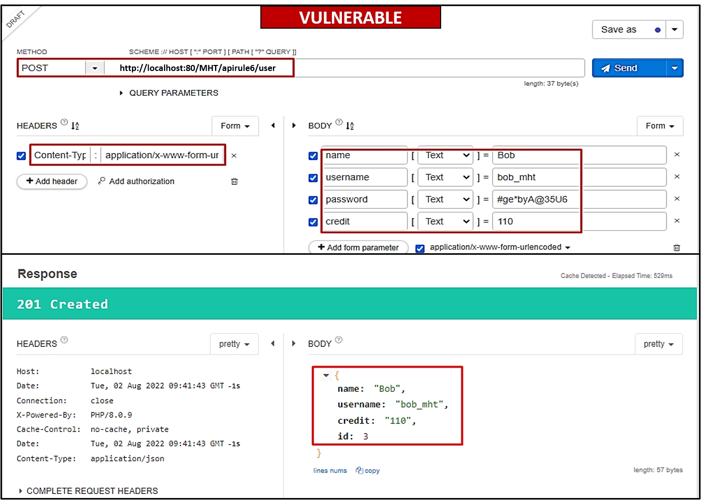 A few users of company MHT reported that their account password had changed, and they could not further log in to their original account. Consequently, the dev team found that Bob had developed a vulnerable login API endpoint