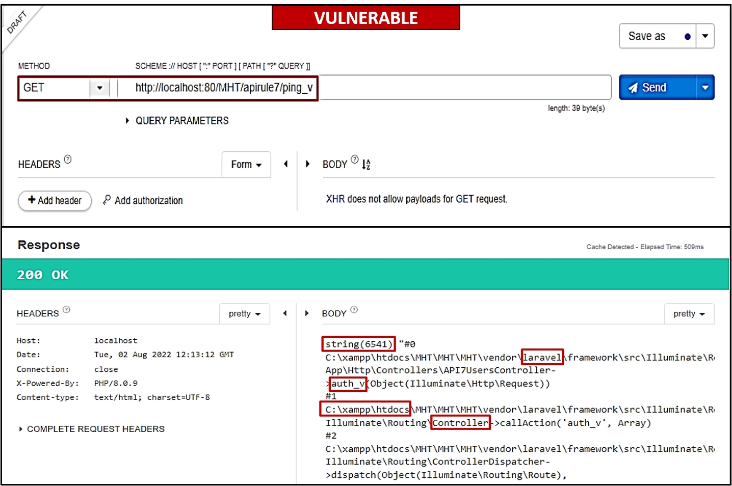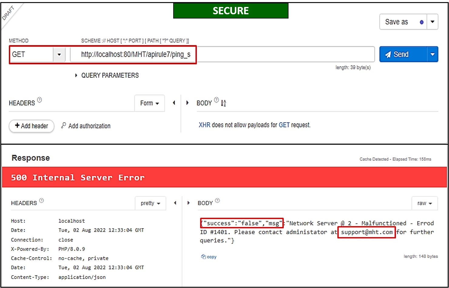 /apirule7/ping_v(GET) that will share details regarding server health and status.Bob successfully designed the endpoint; however, he forgot to implement any error handling to avoid any information leakage.