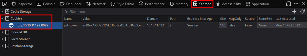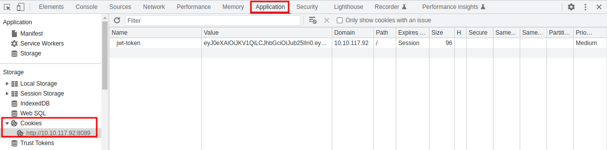 If your login was successful, you should now have a JWT stored as a cookie in your browser. Press F12 to bring out the Developer Tools.