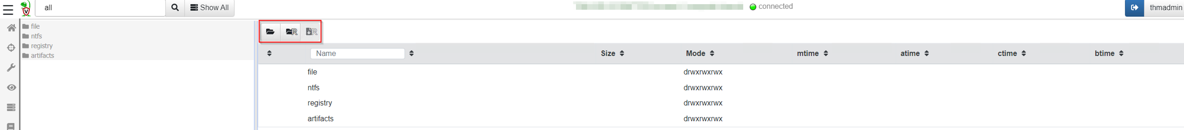 Here the analyst will see the results from the commands executed previously from Shell. Other actions, such as interacting with the VFS (Virtual File System), will appear here in Collected. VFS will be discussed later in upcoming tasks.