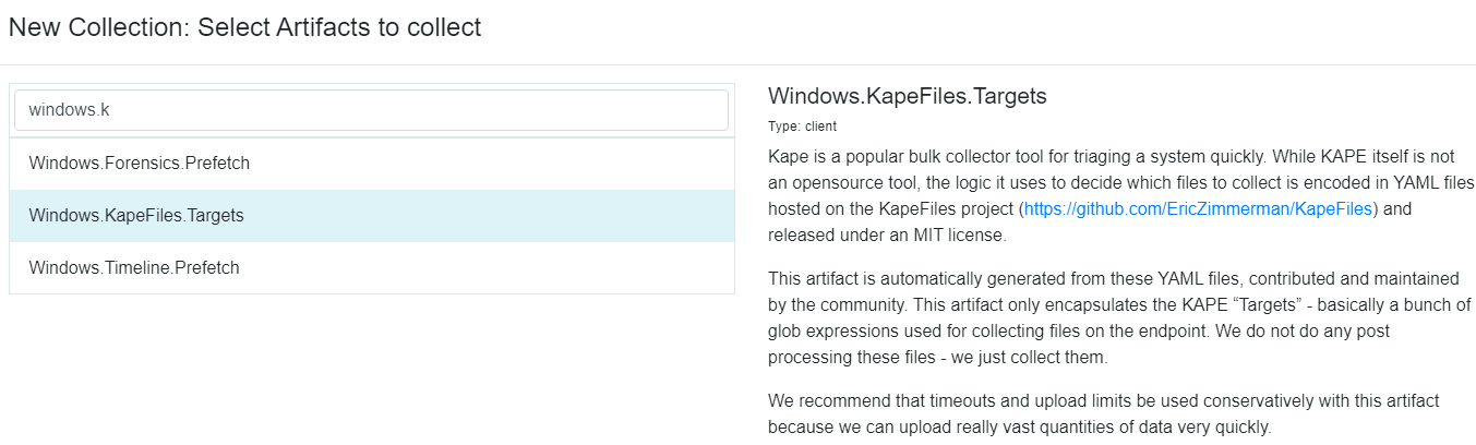 This tool was created by Mike Cohen, a former Google employee who worked on tools such as GRR (GRR Rapid Response) and Rekall (Rekall Memory Forensic Framework). Mike joined Rapid7's Detection and Response Team and continues to work on improving Velociraptor. At the date of this entry, the latest release for Velociraptor is 0.6.3.