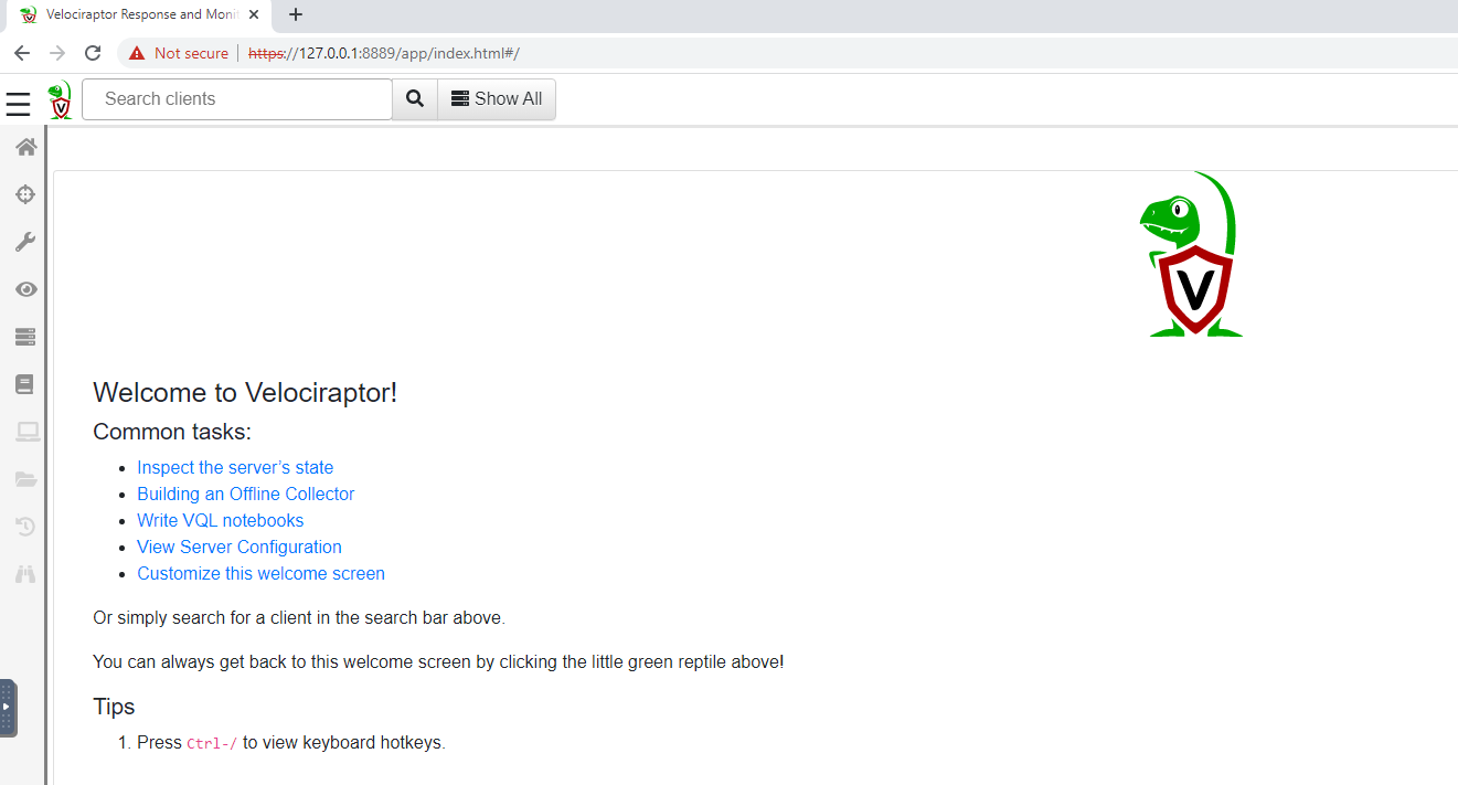 It's worth noting that the version of Velociraptor running in the attached virtual machine is 0.5.8. Now launch Google Chrome and click the Velociraptor shortcut.