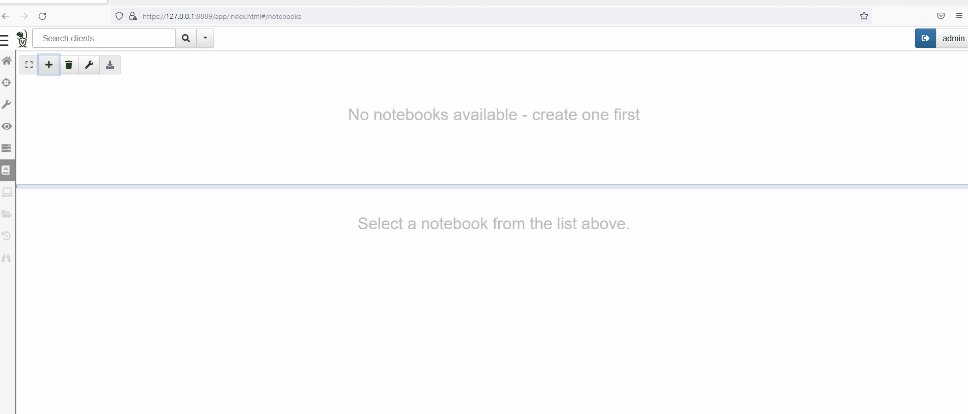 Navigate to the Notebooks tab. In Velociraptor, Notebooks are containers that we can use to execute our queries and commands, as demonstrated below.
