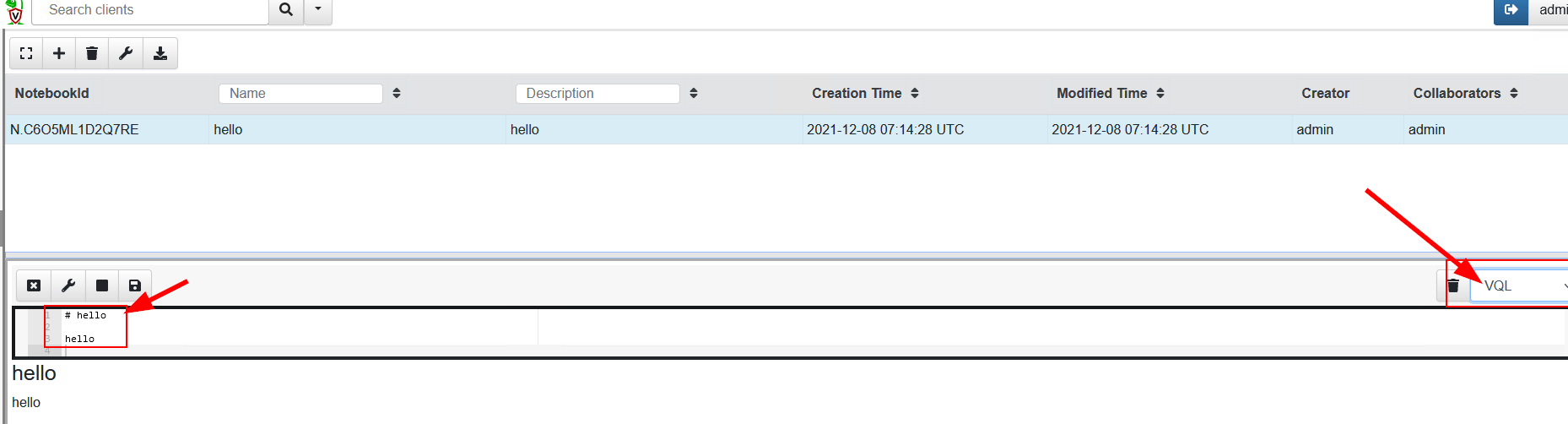 To execute a simple VQL on your own, first create a Notebook.